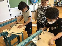 始める前に「細い刃だからすぐ折れちゃって難しいんだよ」と言うと、一人一人上手に板を動かして、自分の作品を仕上げていました。