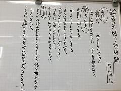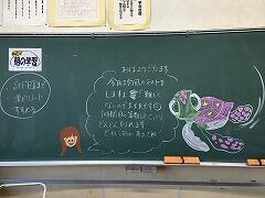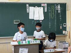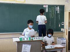 学級会では、進行が上手になってきました。今回の司会は「黒板・イラスト・誕生日」係の3人でした。
