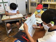 国語では、「紙風船」「水のこころ」という詩の学習をしました。今月の暗唱にもなっています。授業が終わると、「先生もう覚えたよ」と言ってはやくも10人暗唱テストをしにきました。
