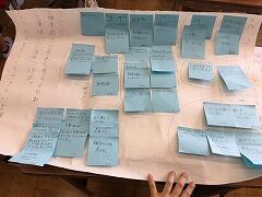 司会者を中心に話会いをしました。話し合いのためのアイテムとして、ホワイトボートを使う班もあれば、模造紙に付箋を貼って整理していく班もありました。最終的に、問題に対する原因と、解決策、まとめまで話し合うことができました。活発な話し合いができたようです。