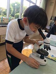 理科では、「花から実へ」の学習に入りました。橋本先生と一緒に、初めて顕微鏡を使いました。