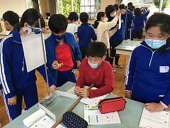 理科の「ふりこのきまり」の学習では、ふりこの長さを変えると1往復する時間は変わるのか?を調べる実験をしました。実験のやり方にも慣れてきて、電卓を使わずに計算する班もたくさんありました。実験の結果から、”ふりこの長さ”が1往復する時間に関係していることが分かったようです。