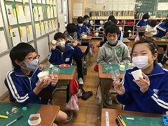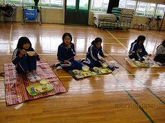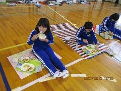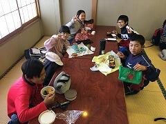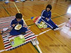 初めてようかんを食べる人もいて、初めての体験がたくさんできましたね★給食は、避難所体験ということで、シートを引いてみんなで円を作って食べました。