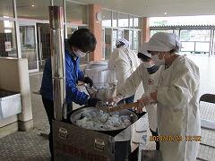 給食や清掃時には、スクールサポートスタッフの方が入ってくれています。この写真はおかわりのジャンケンをしているところです。