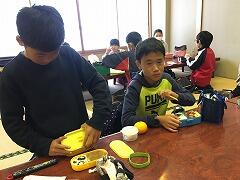 国語の学習では、「和の文化」をサトミ先生に紹介するために、各班ごとにリハーサルを行いました。髙木先生にみてもらい、アドバイスをもらってさらに修正できたようです。昔遊びの班では、けん玉のイラストだけでなく、実演もするとのことで、上手に披露していました。