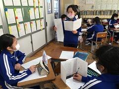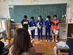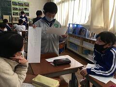 国語の「伝えたい、心に残る言葉」の学習では、これまでの生活で印象に残っている言葉について、グループのみんなにスピーチをしました。お家の方の励ましの言葉や、部活のコーチ、2年生の頃お世話になった先生の言葉など、それぞれが心に残っている言葉について話していました。