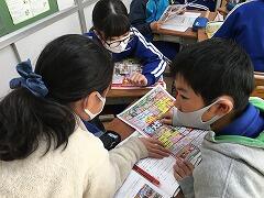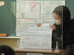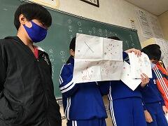 3人グループの話合いでは、友達の考えをしっかり聞いて「その考えはおもいつかなかったよ」「どの考えを発表しようか?」など活発に話し合う様子が見られました。