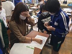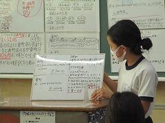 発表する人もみんなに伝わりやすいように工夫しながら話していました。ホワイトボードも大事なところは赤で書いたり、分かりやすいように囲んだりと班のみんなで力を合わせて一つの考えを書いていました