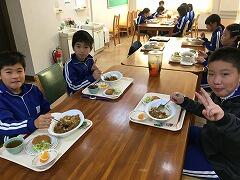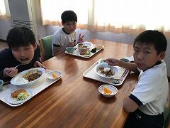 頑張って歩いた後は・・・みんなが大好きなカレーを食べました。おかわりもたくさんしていましたね