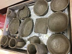 午後はてびねり体験をしました。3種類の成形の仕方を教わり、一生懸命作っていました。完成まで1ヶ月程かかるそうです。家族のことを考えて作った人も多いのでぜひお楽しみに・・・