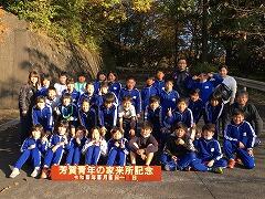ウォークラリーでは、班のみんなでコマ図をもとに進み、クイズにも答えながら頑張りました。チェックポイントの権現平で集合写真を撮りました。
