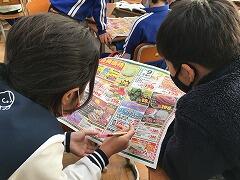 先週はチラシを持ち寄り、班ごとに話し合って問題づくりをしました。ピザ屋さんやスーパー、今話題のGO TOトラベルのチラシを使って問題を作りました。できあがった問題は、授業の最初、5分間の復習問題として使っています^^。今日はどの班の問題かな?と毎回楽しみにしているようでした。