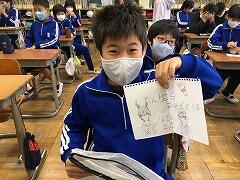 朝の会では、誕生日が同じ二人に黒板・イラスト誕生日係から、バースデーカードと歌のプレゼントありました
