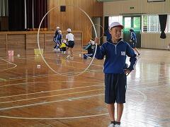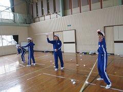 ウォーミングアップの後は、投のプログラムに挑戦しました。目標物に向かってボールを投げたり通したりするプログラムです。