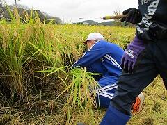 秋晴れの中とは行きませんでしたが、涼しいなか、汗びっしょりになりながら一生懸命稲刈りをしてくれました。