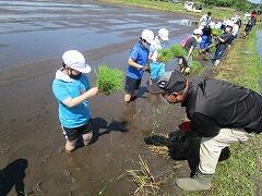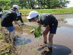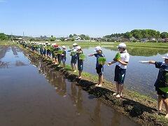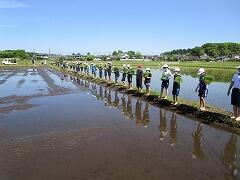 指導者の大木さんや、教育長さん、市貝町役場の皆さまに助けていただきながら、一生懸命田植えをしました。