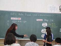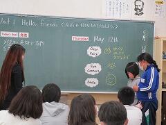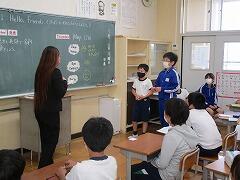 名前のスペルと、好きな食べ物・飲み物・スポーツを紹介し、メイ先生に質問することもできました。
