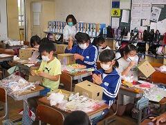 図工では、箱の中に自分の世界を作る「のぞいてみると」の作品作りをしています。