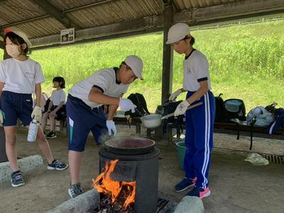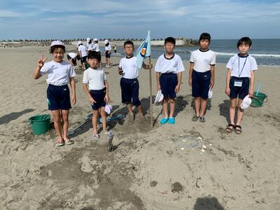 7月18日総合的な学習の時間の一環で、大豆の苗を畑に植え替えました。