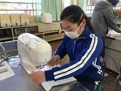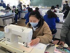 在校生へのプレゼントということで、家庭科の時間にぞうきん作りをしました。