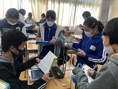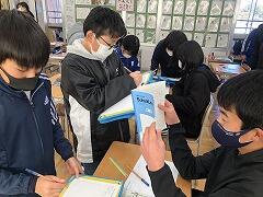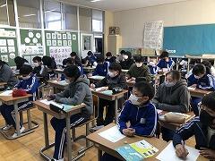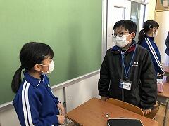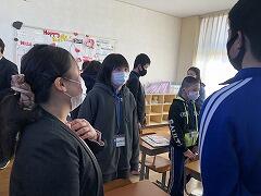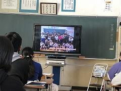 ジェスチャーゲームをやったり、中学校の紹介動画をみたりしました。