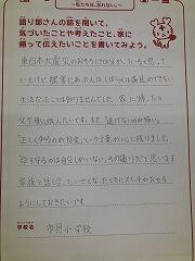 感想や家の人に伝えたいことを書いたワークシートを持ち帰りましたので、ご家庭でも話題にしてみてください。