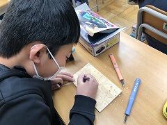 好きな絵を描いて、彫刻刀で彫り、絵の具で色をつけています。