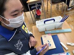 卒業記念品の1つ、オルゴールの飾り付けをしています。