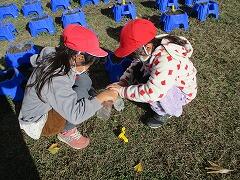 音楽では、「こうしんきょく」を聞きました。ラッパと他の楽器の旋律が交代で出てきます。ラッパやバイオリンの演奏のまねをしながら聞いています。