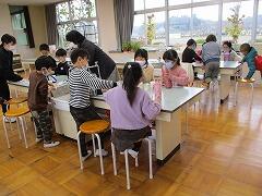 図工は、「かざってなにいれよう」を行いました。箱型か、枕型か形を選んで、基本のバックを作ります。それに思い思いの飾りをつけました。また、後で続きをします。