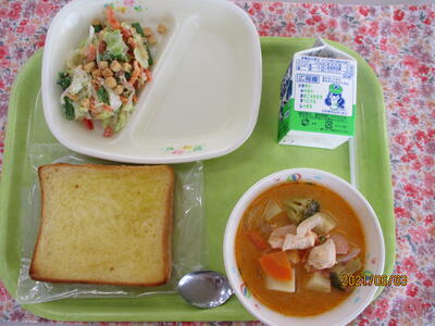 子供たちに大人気の「はちみつレモントースト」です。また、シチューの味付けがものすごくおいしいクリームシチューでした。(レシピが欲しい一品でした。)