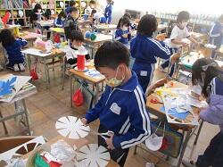 1組は3日、2組は4日、図工の時間に「かみざらコロコロ」を作り始めました。