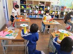 2日(水)、今日は生活科の時間に節分の鬼のお面を作りました。