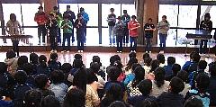 この1年間にお世話になった方々をお迎えして、児童会主催による「感謝の会」を行いました。都合で出席いただけなかった方もいらっしゃいましたが、15名の方に作文と花をお渡して感謝の気持ちを伝えました。