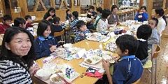10月・11月生まれの16人の児童と3人の教職員が、ランチルームで「誕生」をお祝いしながら一緒に給食を会食しました。本日の給食献立に自分の希望のデザート1つが付きました。