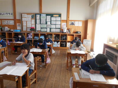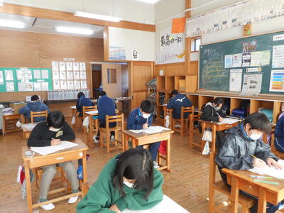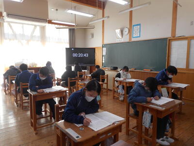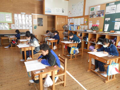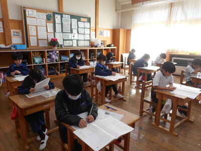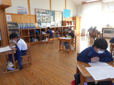 学力テストは来週に行いますが、今日は、ほかの学年に合わせてテスト中です。