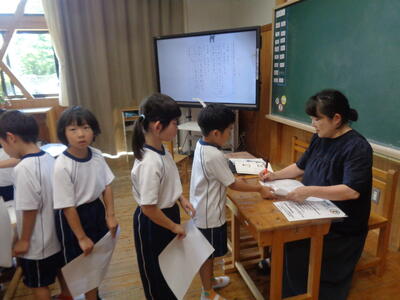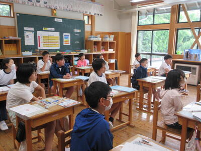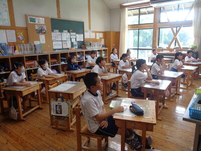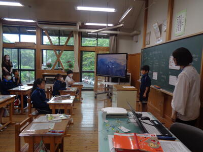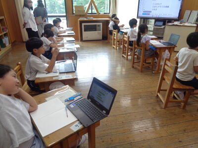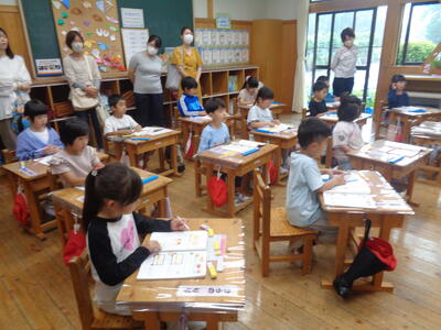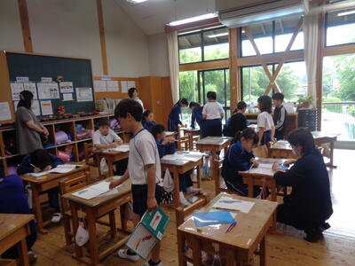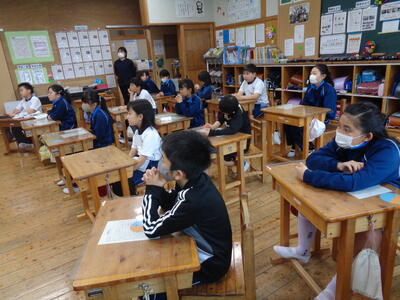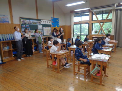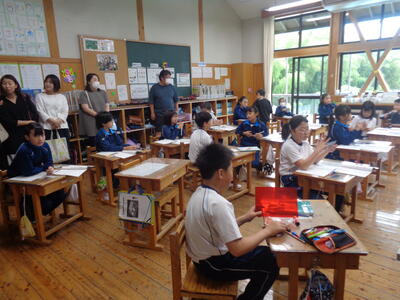 小貝小の先生方も参観する中、通常通りの落ち着いた態度で学習できました。