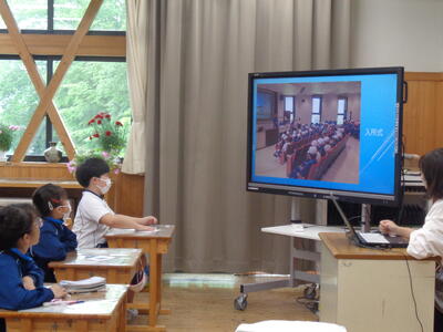 5年生は臨海自然教室の思い出発表とスライドで思い出の写真鑑賞会