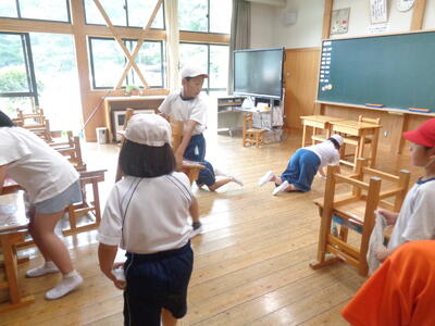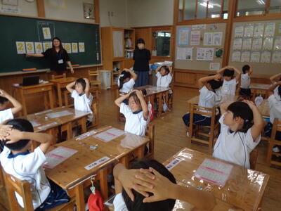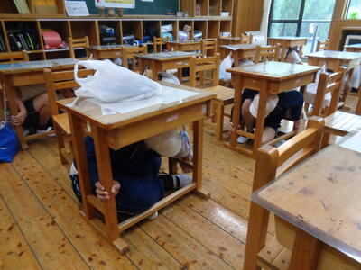 地震時の避難を想定し、体育館に素早く静かに避難できました。