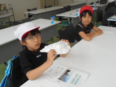 高分子吸収ポリマーについて説明をいただき、さらにむれにくい商品(紙おむつ)づくりの工夫を知ることができました。