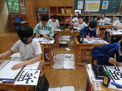 5校時は書写 毛筆でした。『湖』の文字を書きました!