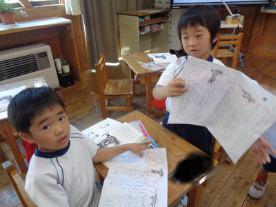 午前中は国語で複数資料を読み比べる学習をしました。