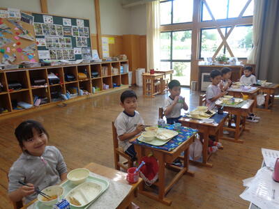 「(お家の人も) 一緒に食べるんだよ」とニコニコ顔の1・2年生でした