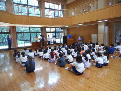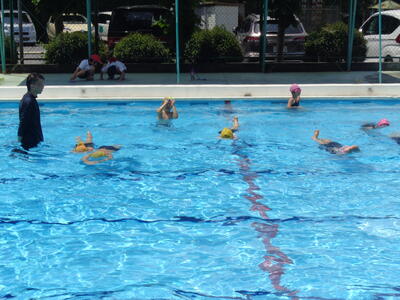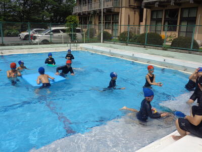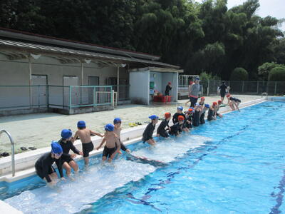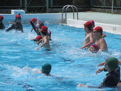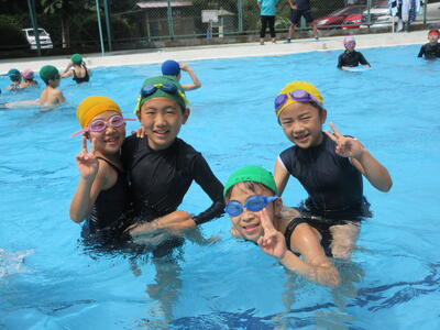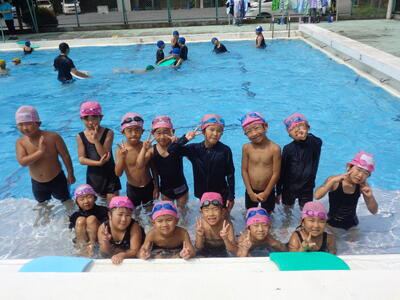 夏休みの学校プール開放が水温上昇に伴い、近年は実施できません。異学年や他学年とのプールでの交流は全くない状況でしたので、児童集会で全校生参加のプール活動ができたことは大変意義ある取組でした。