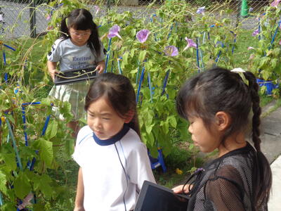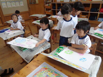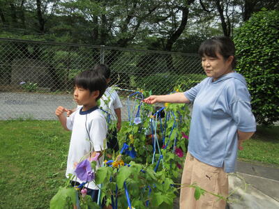 1年生 朝顔の観察やたたき染めをしました。