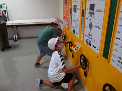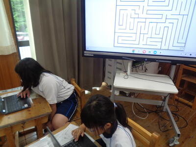 午後、3年生も「さしばのさっちゃん」がめいろをくぐりぬけるプログラミングを体験しました。
