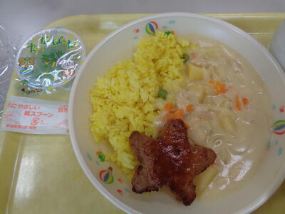 講話終了後には、親子で給食会でした
