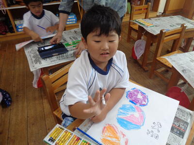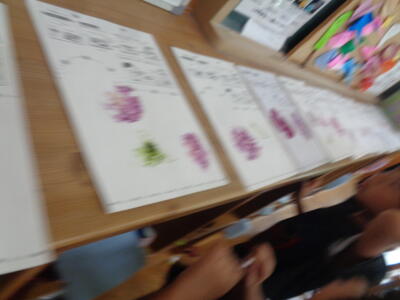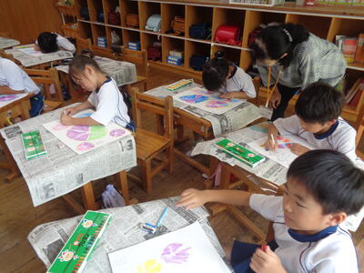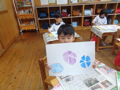 お花を取って「たたき染め」しました。上手です。