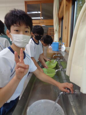 6年生↑家庭科 洗濯の学習中