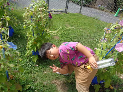 「朝顔畑」のように大きく育った!朝顔さんと一緒に「はいポーズ!」